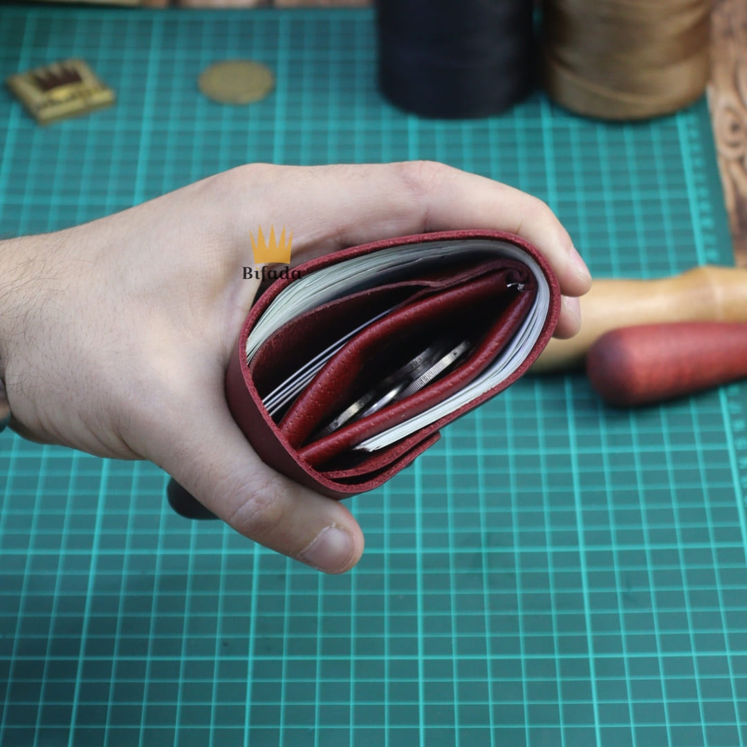 محفظة من الجلد الحقيقي الفاخر متينة مميزة وعملية (الأحمر العنابي) T