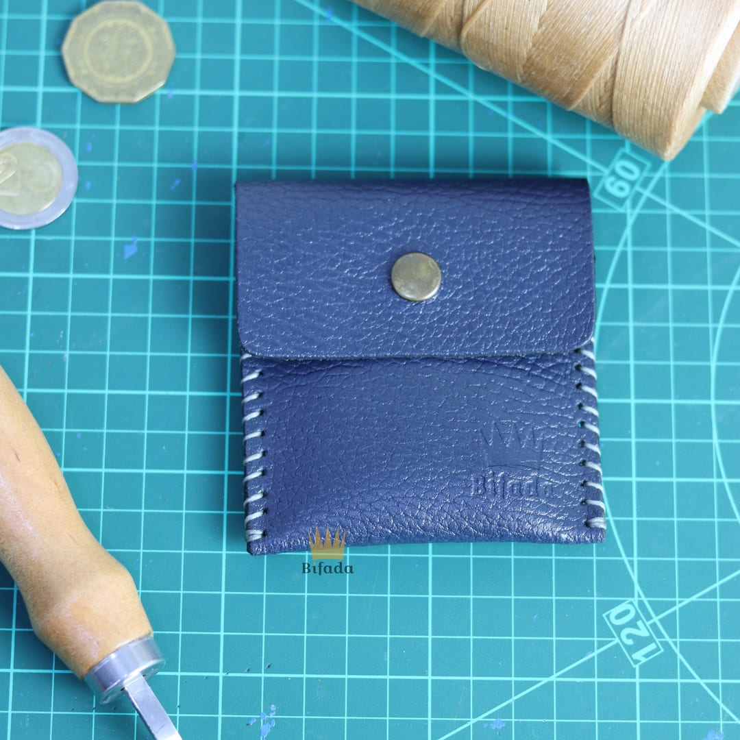 محفظة من الجلد الطبيعي لحمل النقود المعدنية أو البطاقات + علاقة مفاتيح مجانا (اللون الأزرق) AP