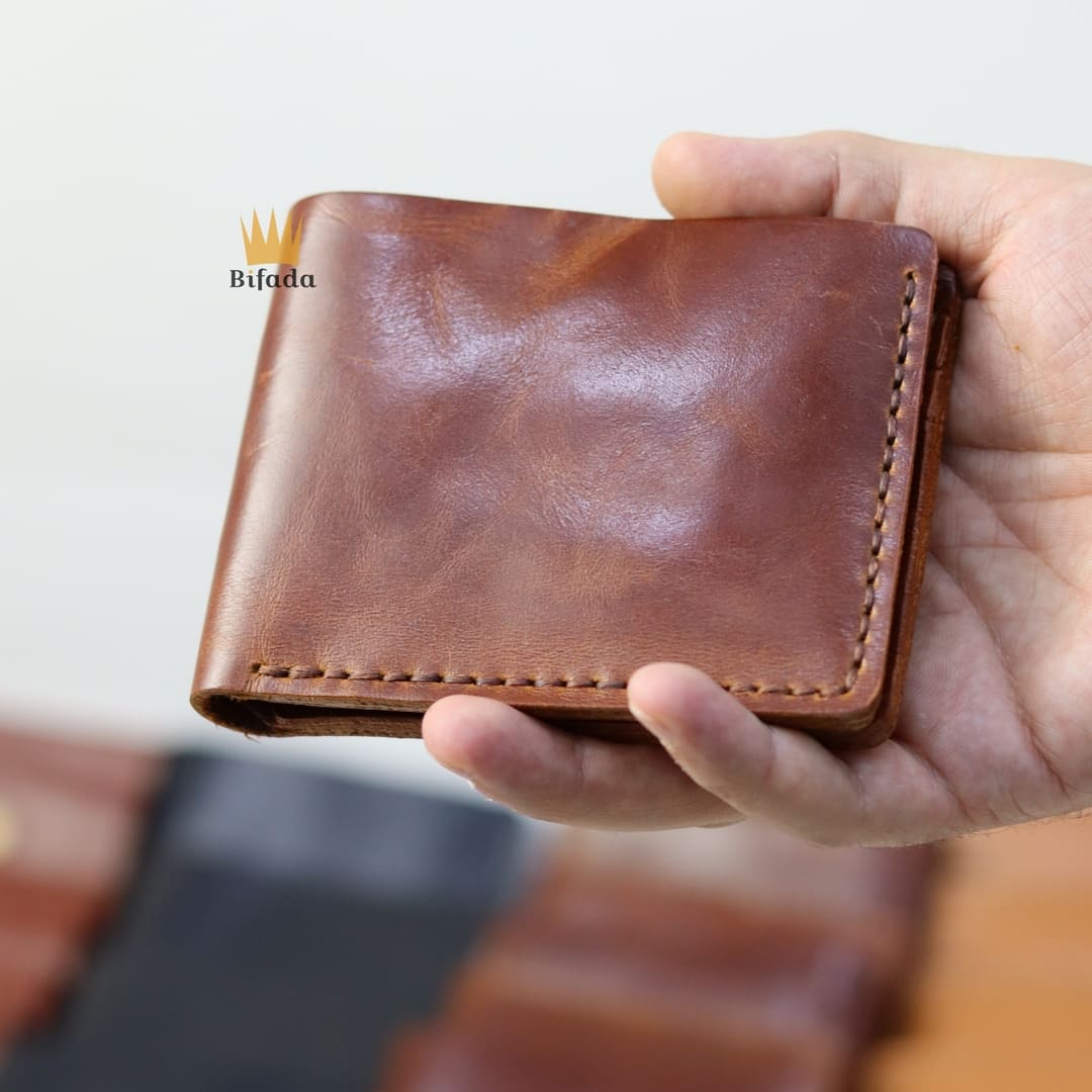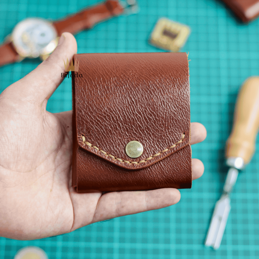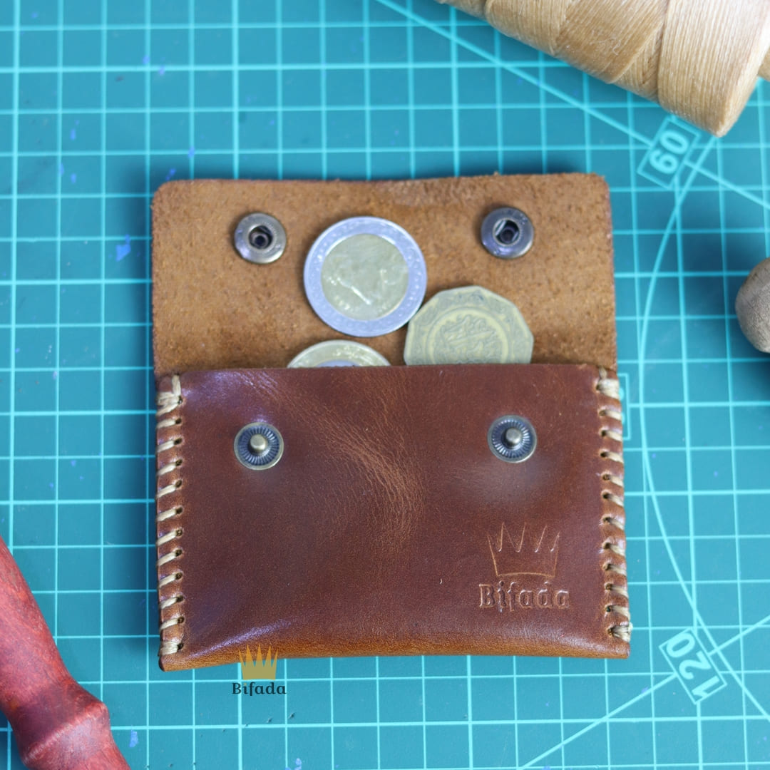 محفظة من الجلد الطبيعي لحمل النقود المعدنية أو البطاقات مصنوعة باليد (اللون القهوي) A