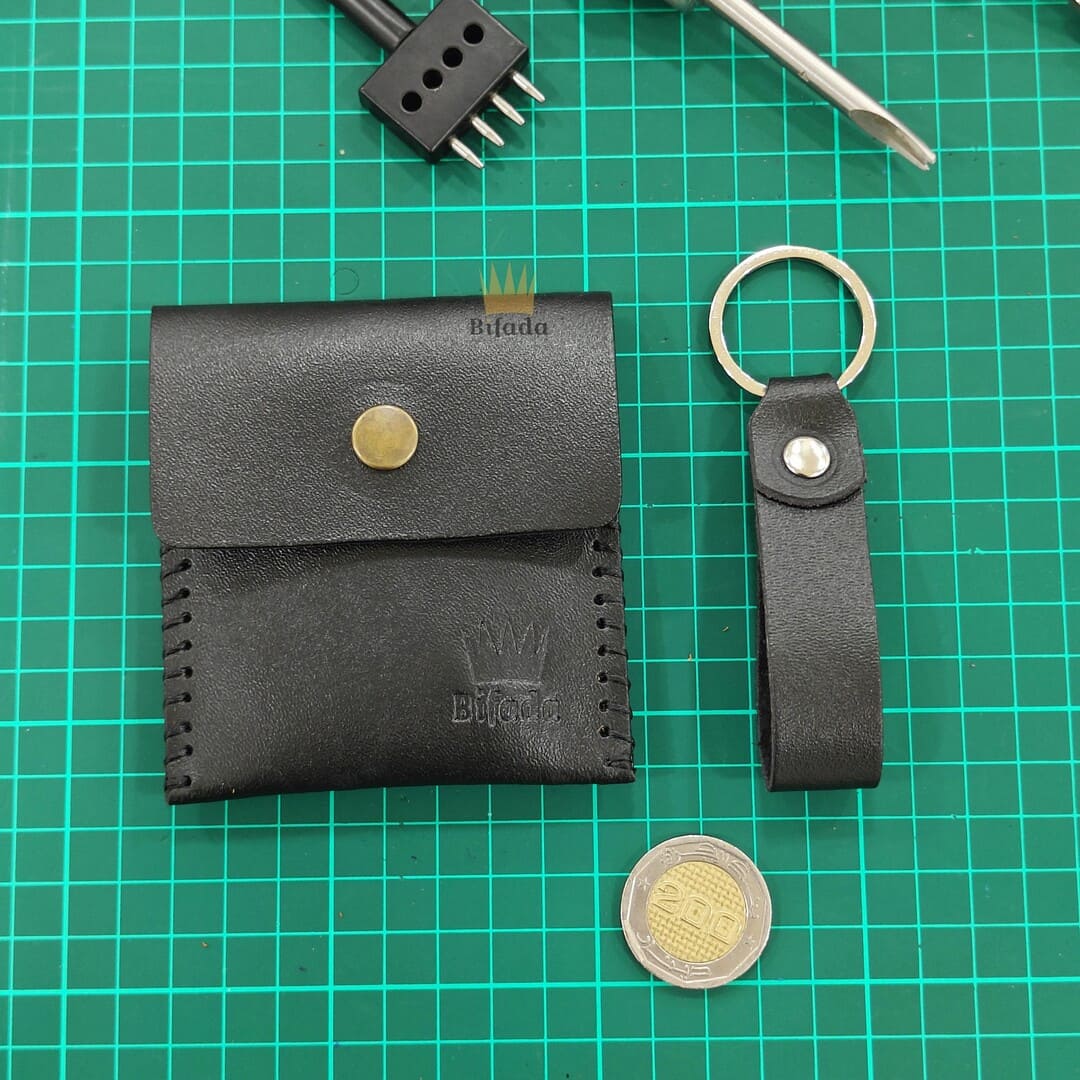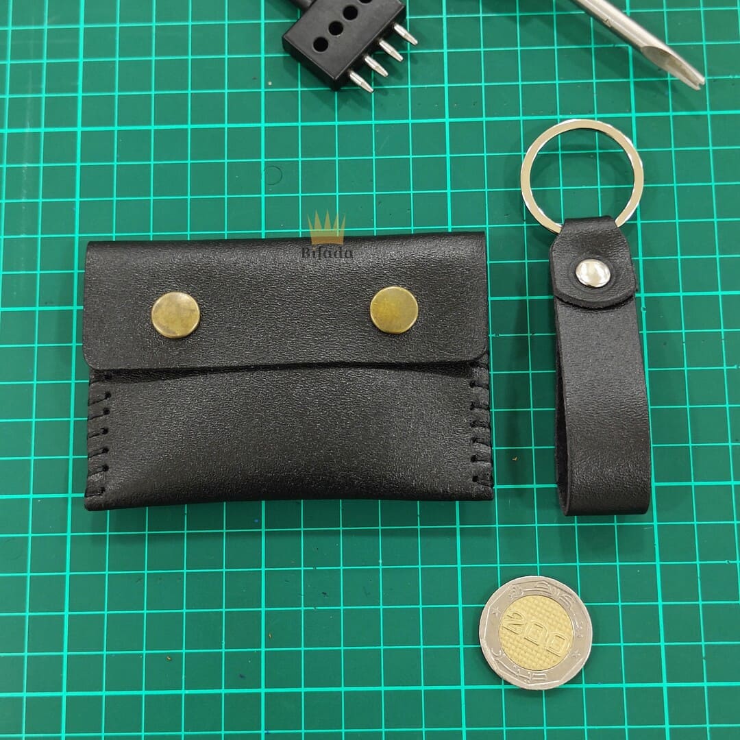 محفظة من الجلد الطبيعي لحمل النقود المعدنية أو البطاقات + علاقة مفاتيح مجانا (اللون الأسود) BP