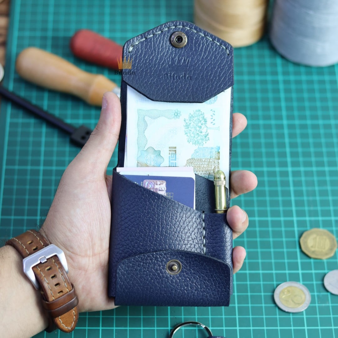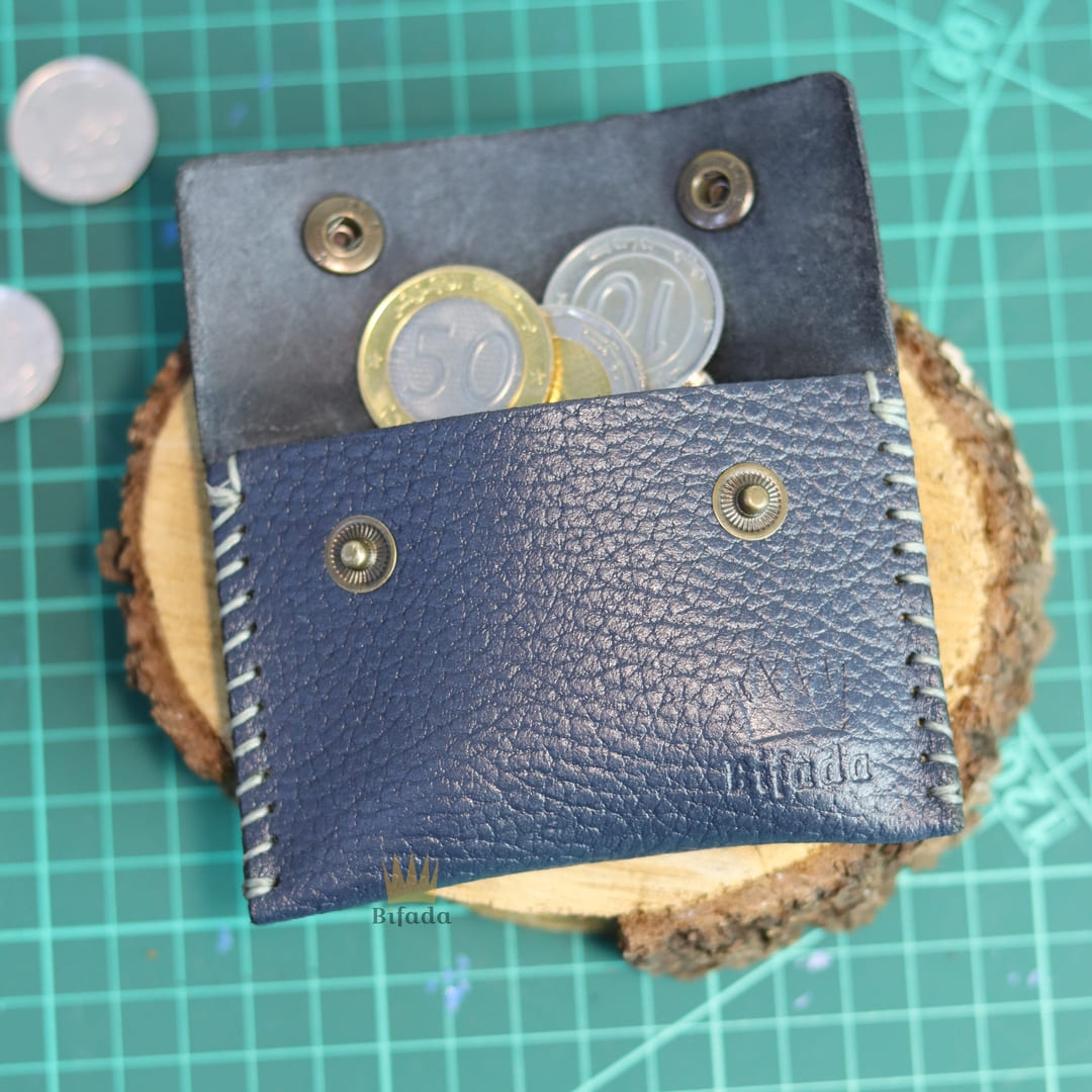 محفظة من الجلد الطبيعي لحمل النقود المعدنية أو البطاقات مصنوعة باليد (اللون الازرق) A