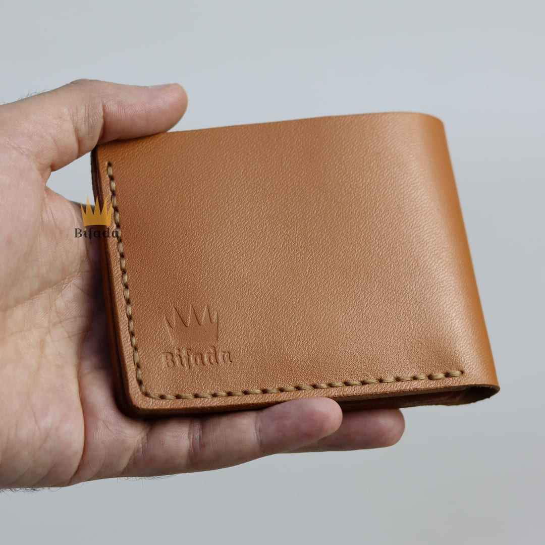 محفظة من الجلد الطبيعي لحمل النقود المعدنية أو البطاقات مصنوعة باليد (اللون القهوي) B