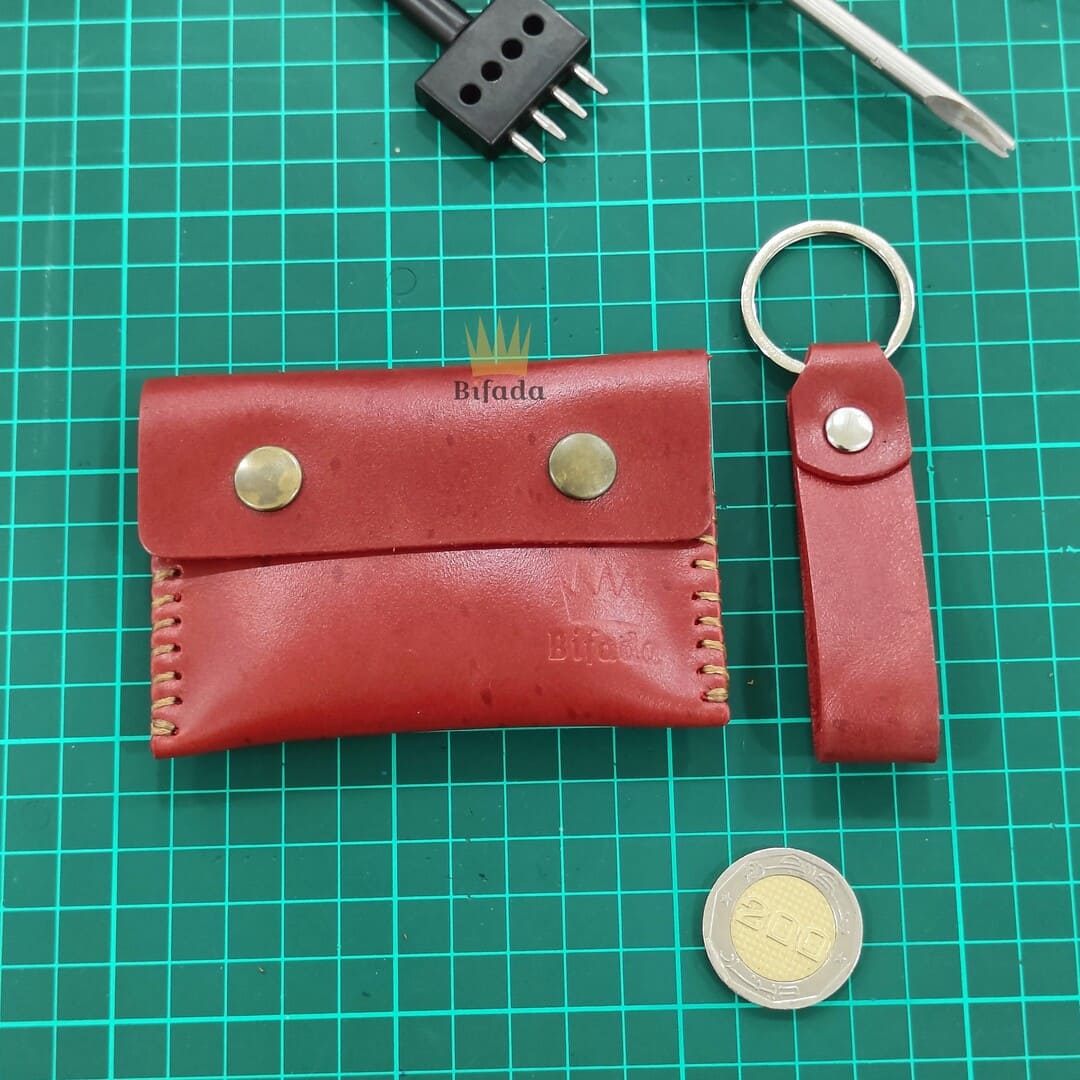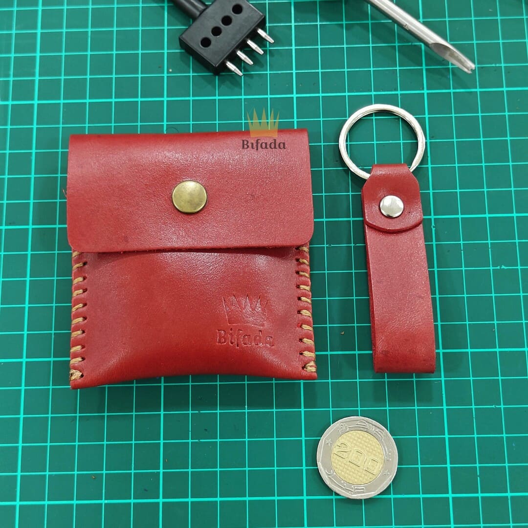 محفظة من الجلد الطبيعي لحمل النقود المعدنية أو البطاقات + علاقة مفاتيح مجانا (اللون الأحمر) AP