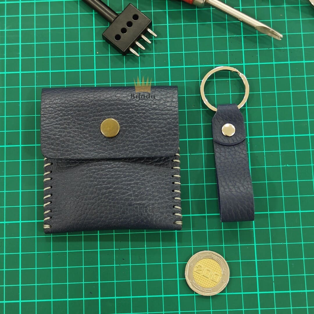 محفظة من الجلد الطبيعي لحمل النقود المعدنية أو البطاقات + علاقة مفاتيح مجانا (اللون الأزرق) BP