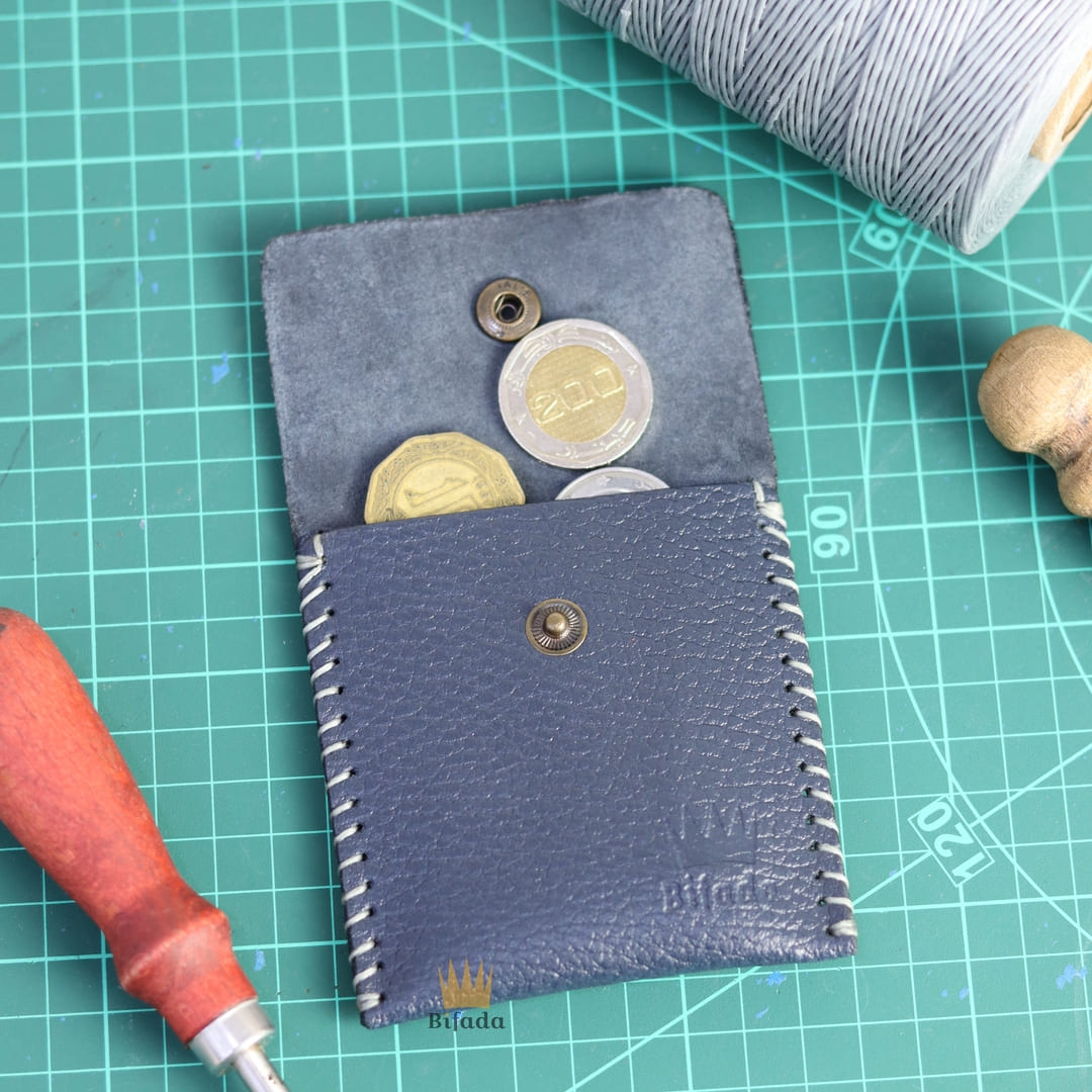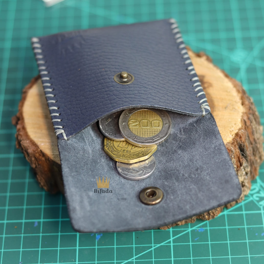 محفظة من الجلد الطبيعي لحمل النقود المعدنية أو البطاقات مصنوعة باليد (اللون الازرق) A