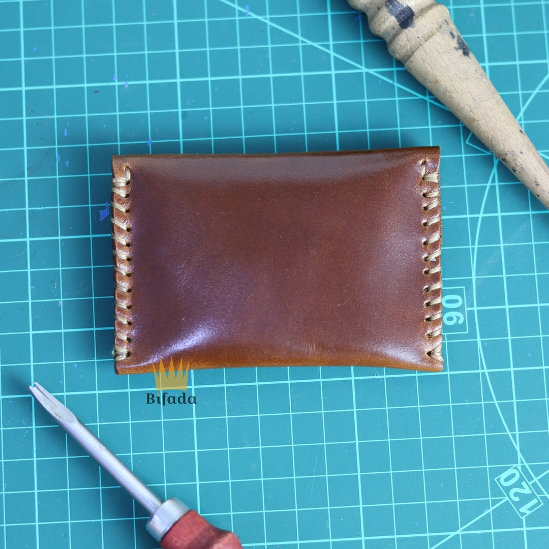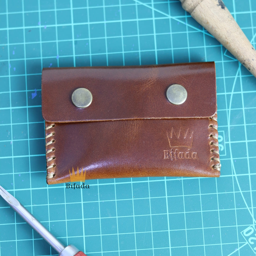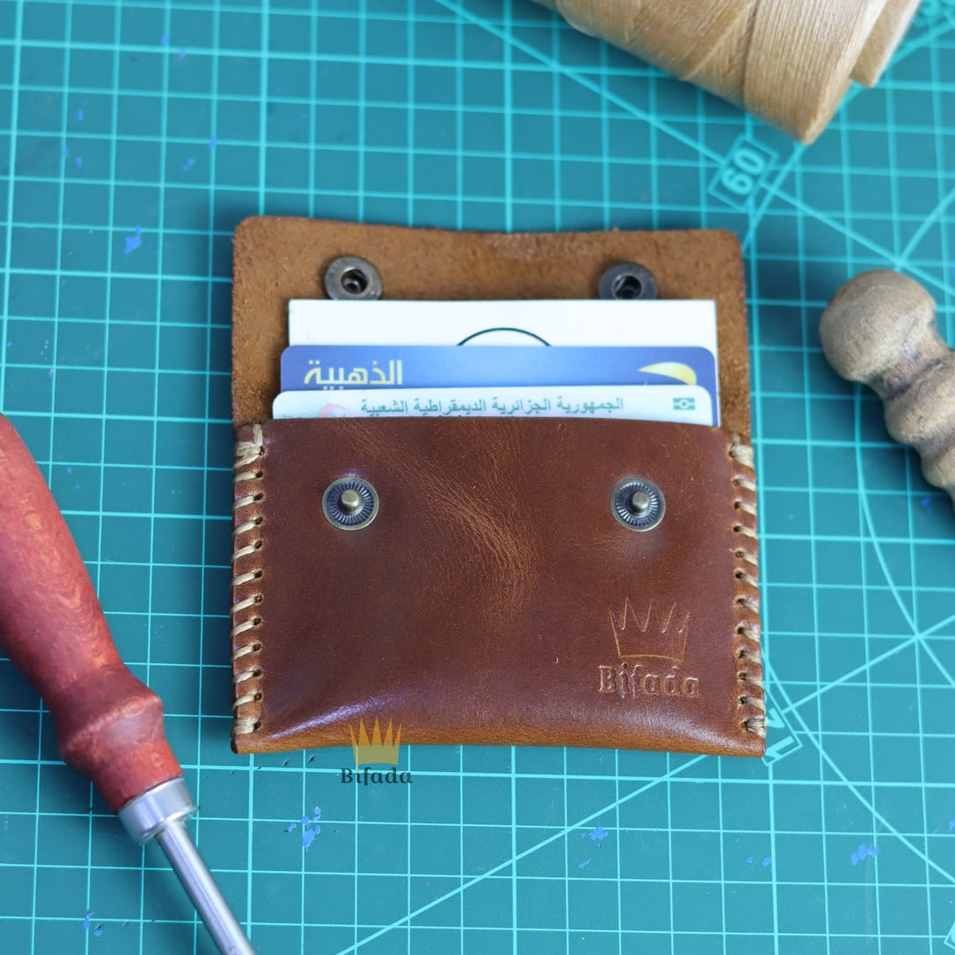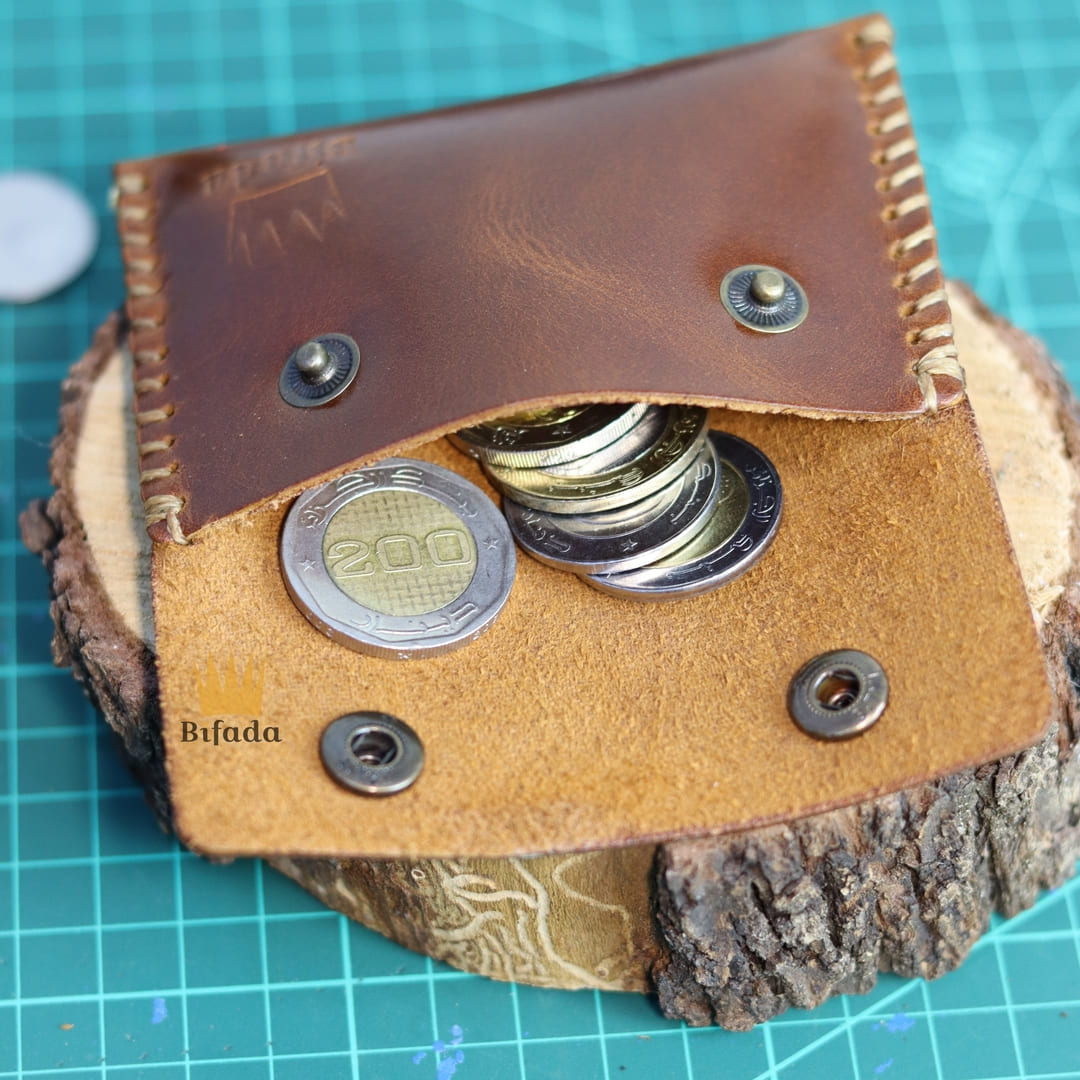 محفظة من الجلد الطبيعي لحمل النقود المعدنية أو البطاقات مصنوعة باليد (اللون القهوي) B