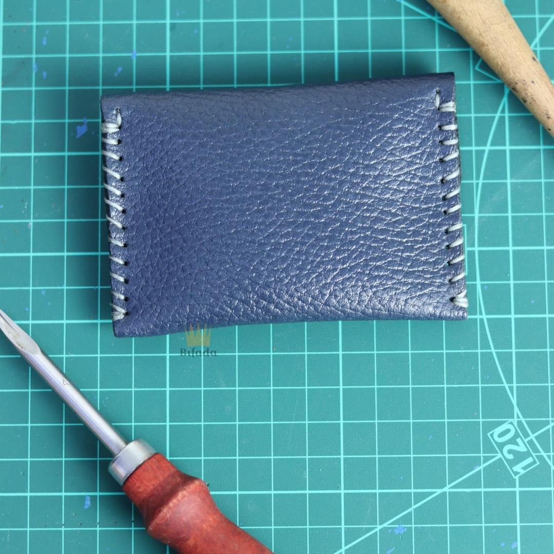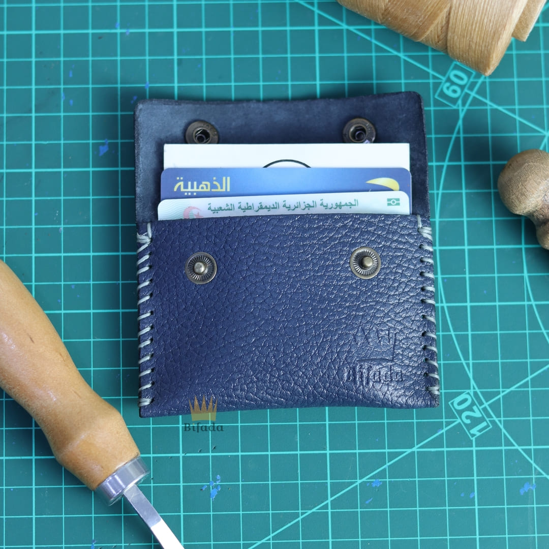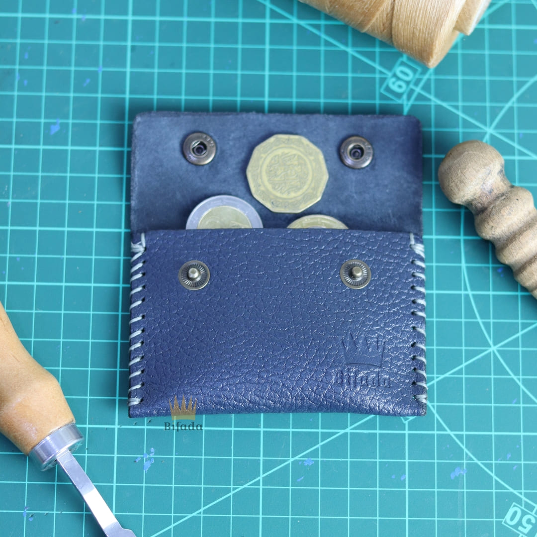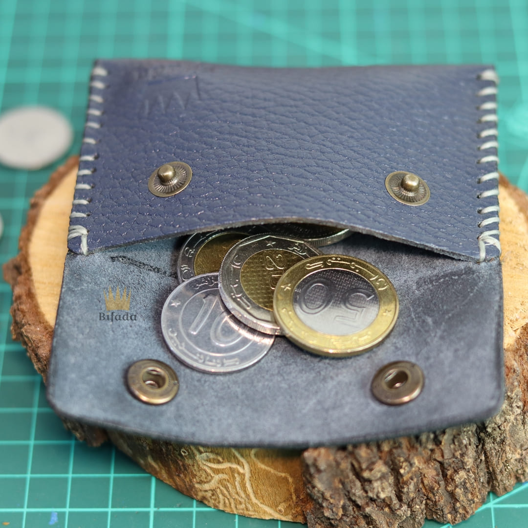 محفظة من الجلد الطبيعي لحمل النقود المعدنية أو البطاقات مصنوعة باليد (اللون الأزرق) B